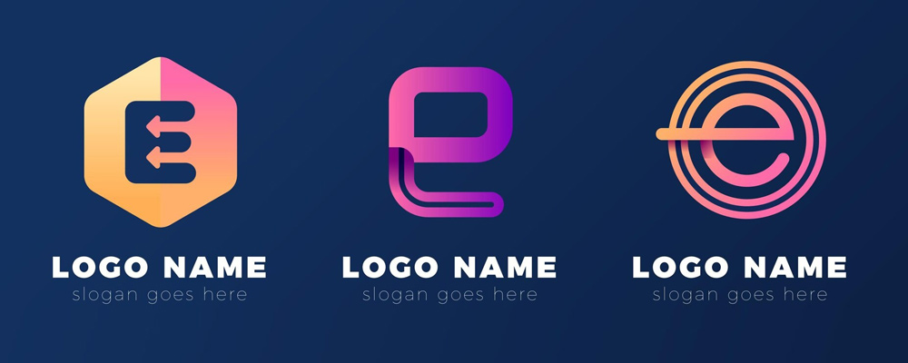 - Dodaj efekty ruchu (np. linie za sobą) aby przekazać energię lub szybkość. Sprawdź nasz wybór logo z literą E.