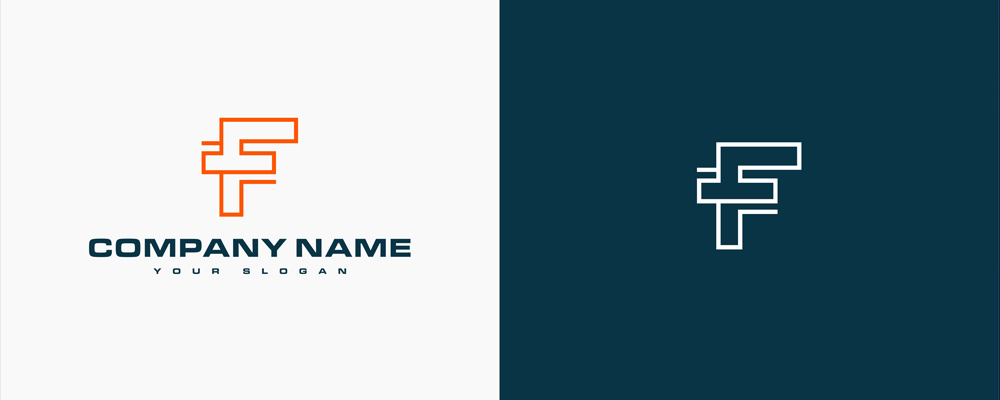 - Wykorzystaj przestrzeń ujemną między dwiema poziomymi liniami i wbuduj groty strzały, aby symbolizować wzrost i postęp. Zobacz nasz wybór logo z literą F.